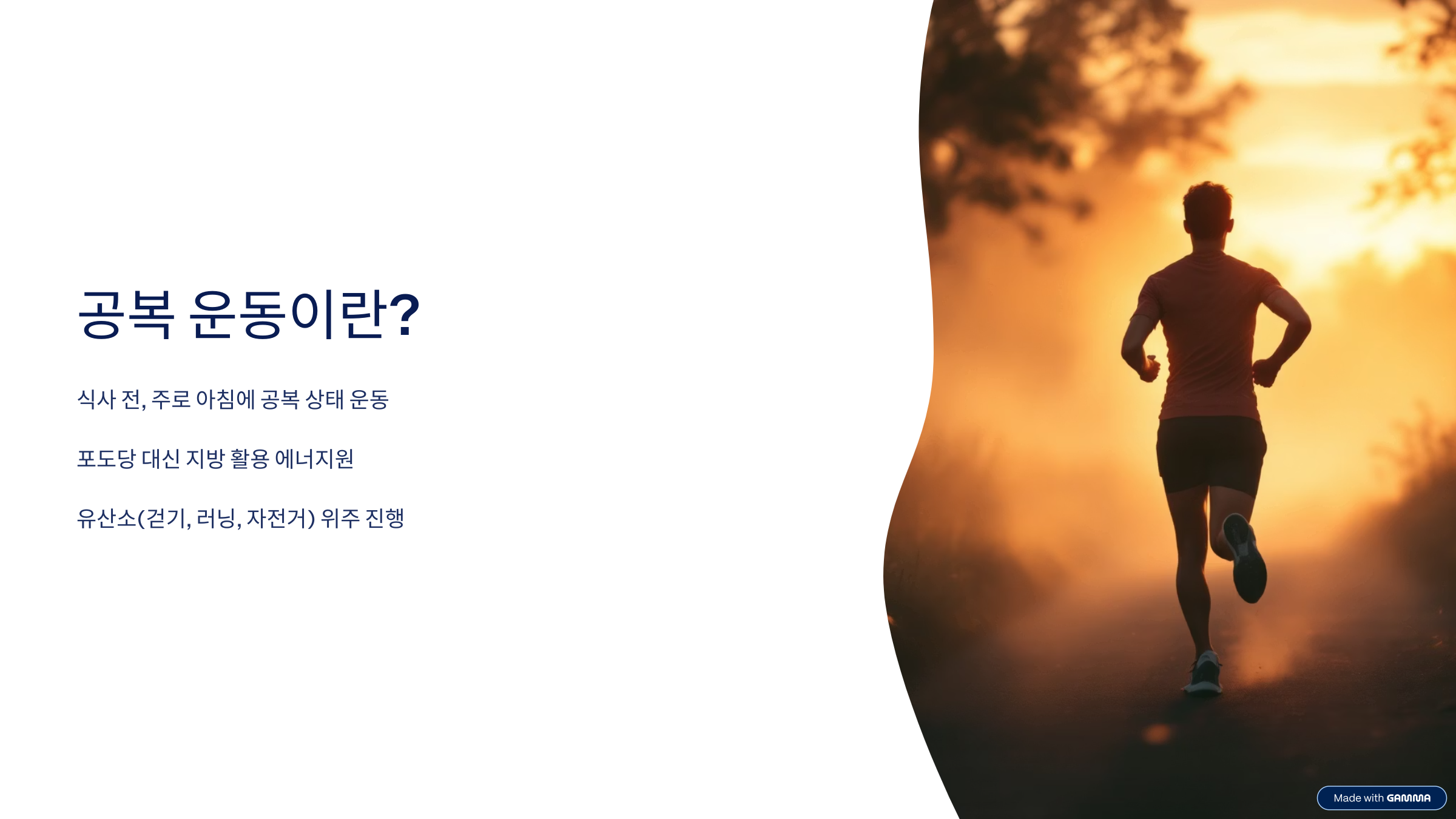 공복 운동(Fasted cardio)은 아침 식사 전, 즉 배 속이 비어 있는 상태에서 운동을 하는 것을 말해요. 일반적으로 수면 후 8시간 이상 아무것도 먹지 않은 상태에서 가볍게 걷거나 달리기, 요가 등 유산소 중심의 운동을 진행하게 됩니다.