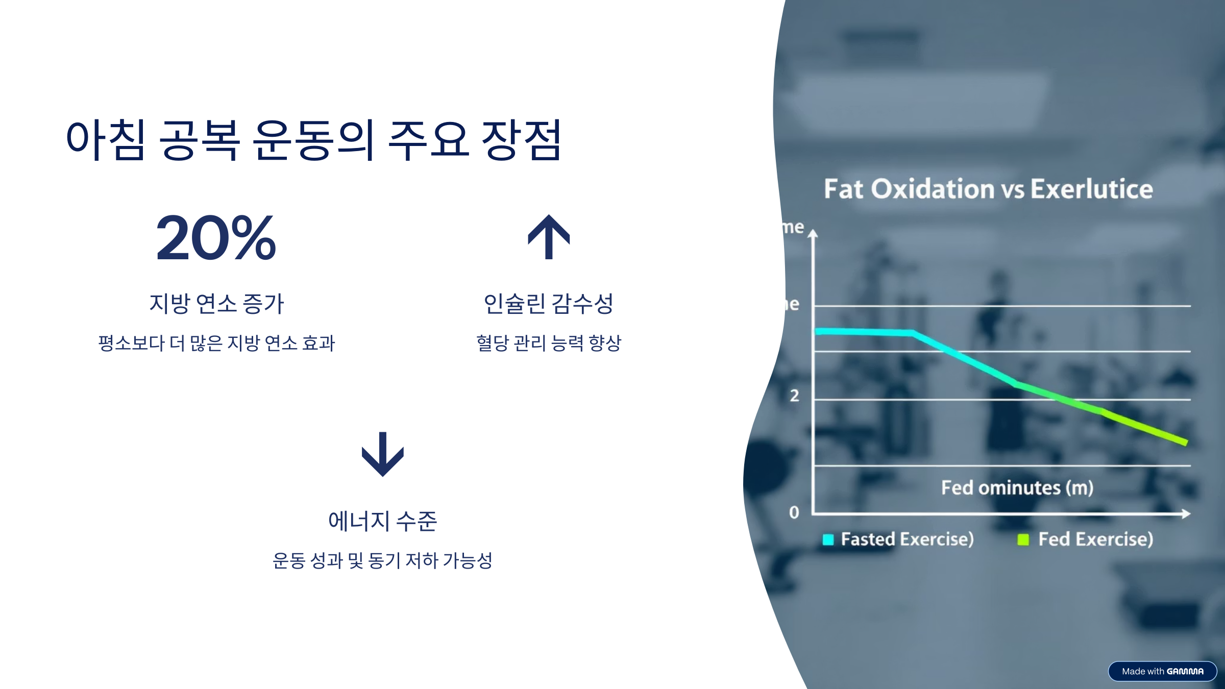 그러나 이러한 효과가 장기적인 체중 감량이나 체지방 감소로 이어지는지는 명확하지 않습니다. 또한, 최근 연구에서는 공복 운동이 인슐린 감수성을 개선할 수 있다는 가능성이 제시되었지만, 이는 개인의 건강 상태와 운동 강도에 따라 달라질 수 있습니다.