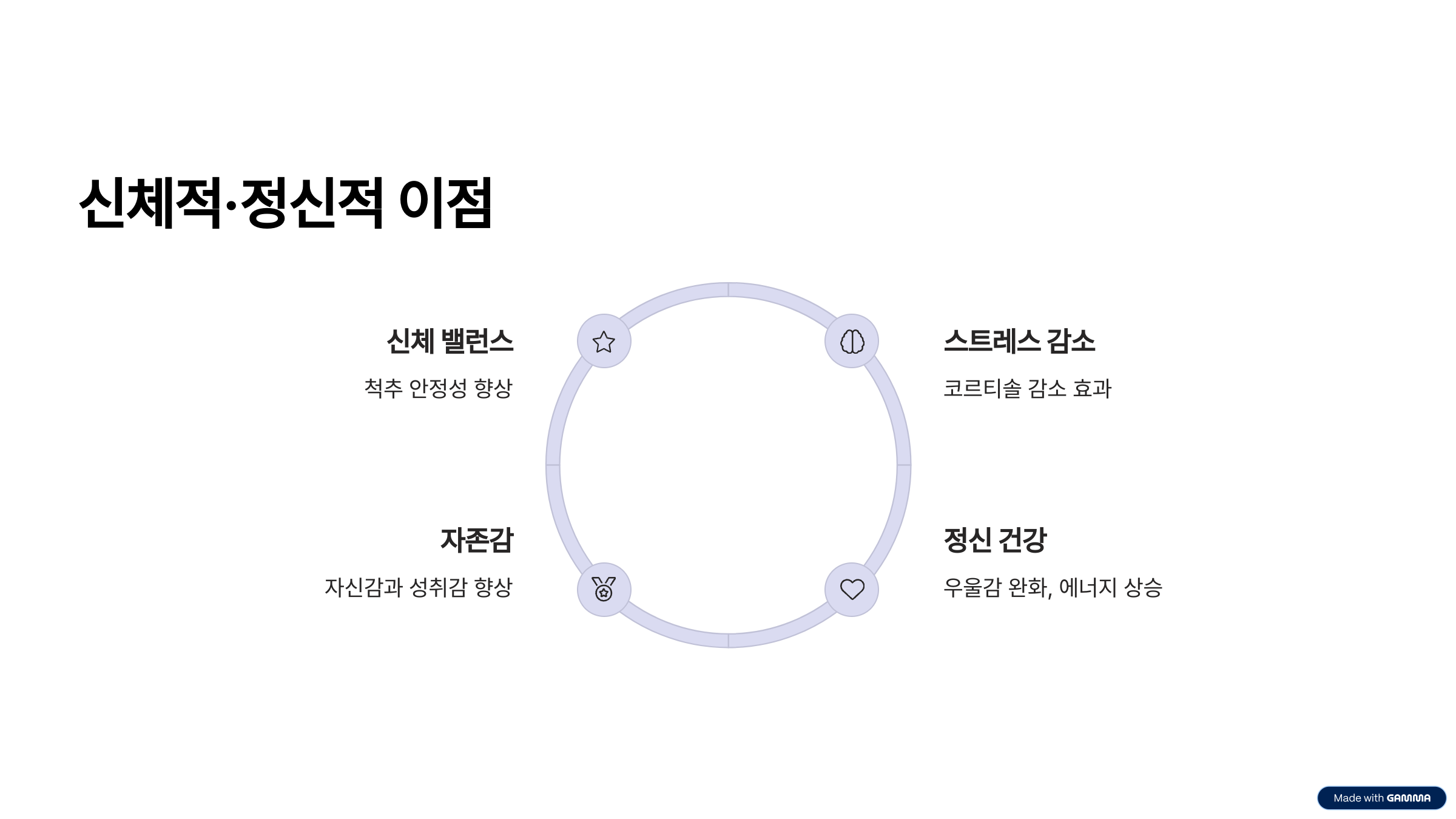 - 스트레스 호르몬(코르티솔) 감소